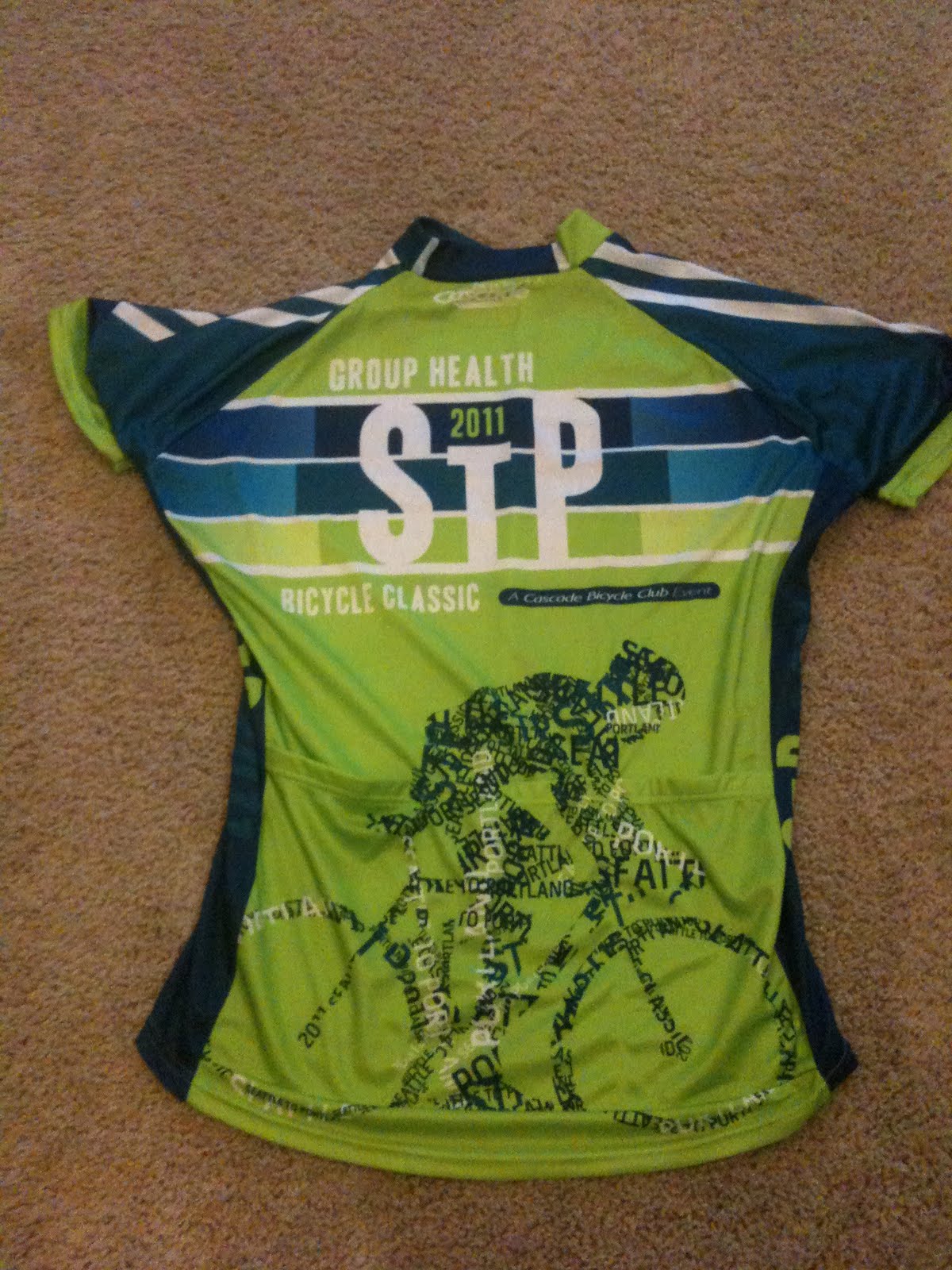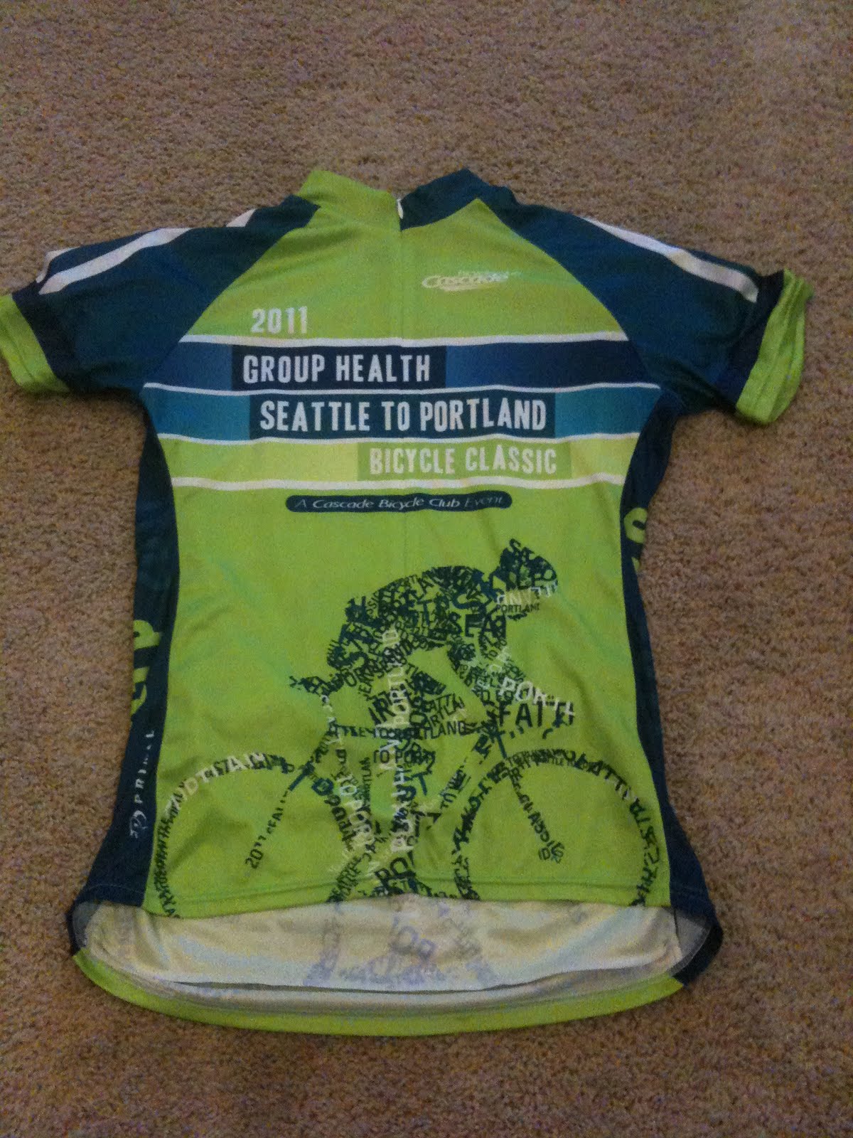 And, one of my Seattle-to-Portland Bike Ride jerseys arrived, very bright and very cool! I will be getting a special red jersey as I am riding as Medical Support during the event, but that has not arrived yet.