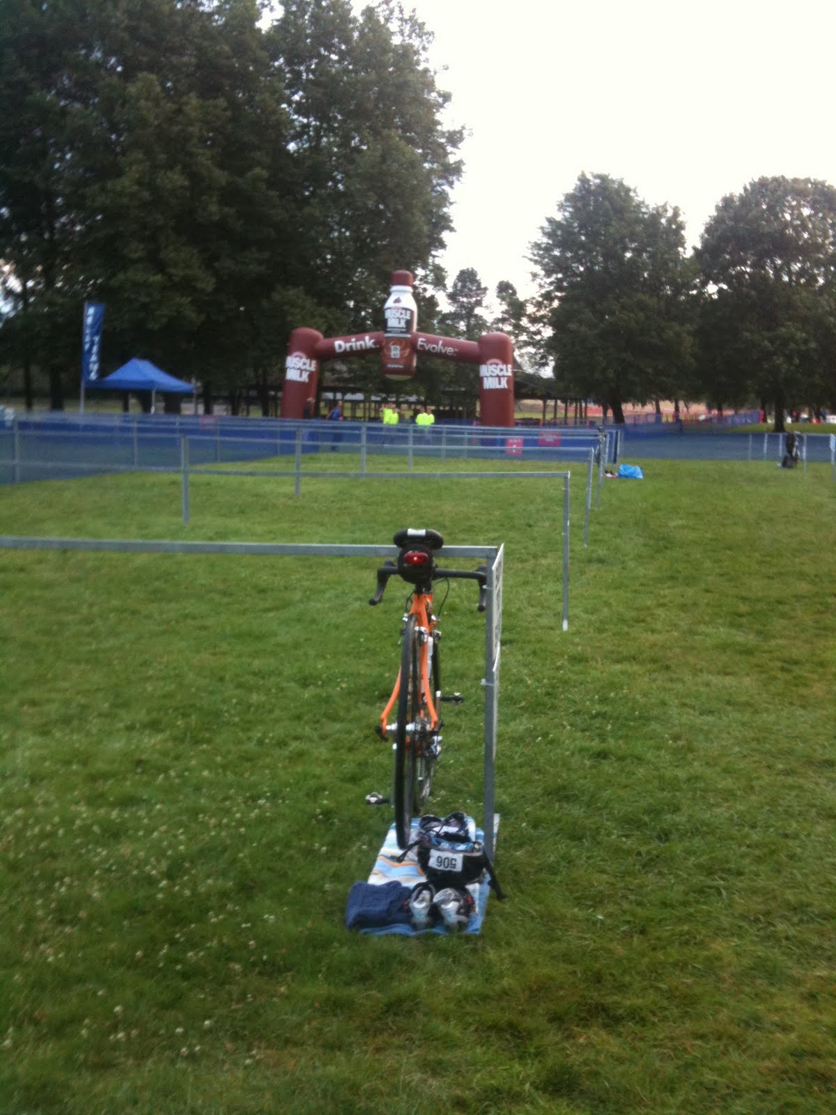 We arrived at the gate for the park just slightly before they opened at 6 AM and were the third car in (Portland Tri Club friend Darcie Facebooked me that my car was very obviously the third car in due to it’s location in the parking area!). But I got some prime real estate! It’s really nice to get there early and not feel rushed before the event.