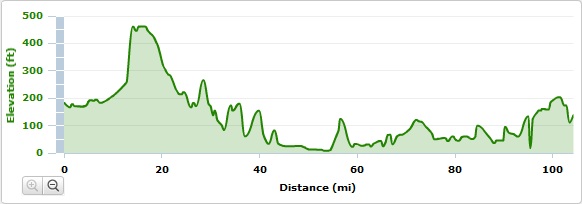 So we followed Highway 30 all the way into Portland from here. Notably, the worst part of the ride, trafficwise. Highway 30 is horrible in a car, let alone on a bike, as it’s narrow, curvy, and fast traffic. We fortunately missed a patch of tacks in the bicycle lane (http://www.oregonlive.com/news/index.ssf/2011/07/post_121.html) between Scappose and Cornelius Pass. Right at Sauvie’s Island, at a crest in the road, we got our first glimpse of Portland in the form of the spires of the St. John’s Bridge spanning the Willamette River! Woooooo Hooooo! We exited Highway 30 to the NW Bridge Avenue hill approach to the St. John’s Bridge, wound through North Portland and along the bluff, and finally crossed the finish line at mile 204 at Holladay Park by Lloyd Center Mall!