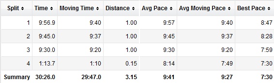 Apparently I’m trying to run faster…faster than I can right now. I had a 30 minute easy run scheduled early in the week which turned into a too fast out and walk back. I was having trouble understanding what had happened until I looked at my splits: