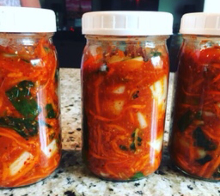 Ironically enough, my neighbor, who’d just joined my Vegan and Whole Food Plant Based Canning group on Facebook asked me when I got home if I knew how to can kimchi, as she and her husband love it and buy it every week. I showed her the spices I’d just picked up, explained how we can just ferment it in the canning jars and not preserve them by canning, and decided to make some! I did some research online and settled on the Minimalist Baker’s Easy Vegan Kimchi recipe as I love her recipes and she’s a hometown girl from Portland, Oregon. If you want the recipe and directions, click on the link to her blog.